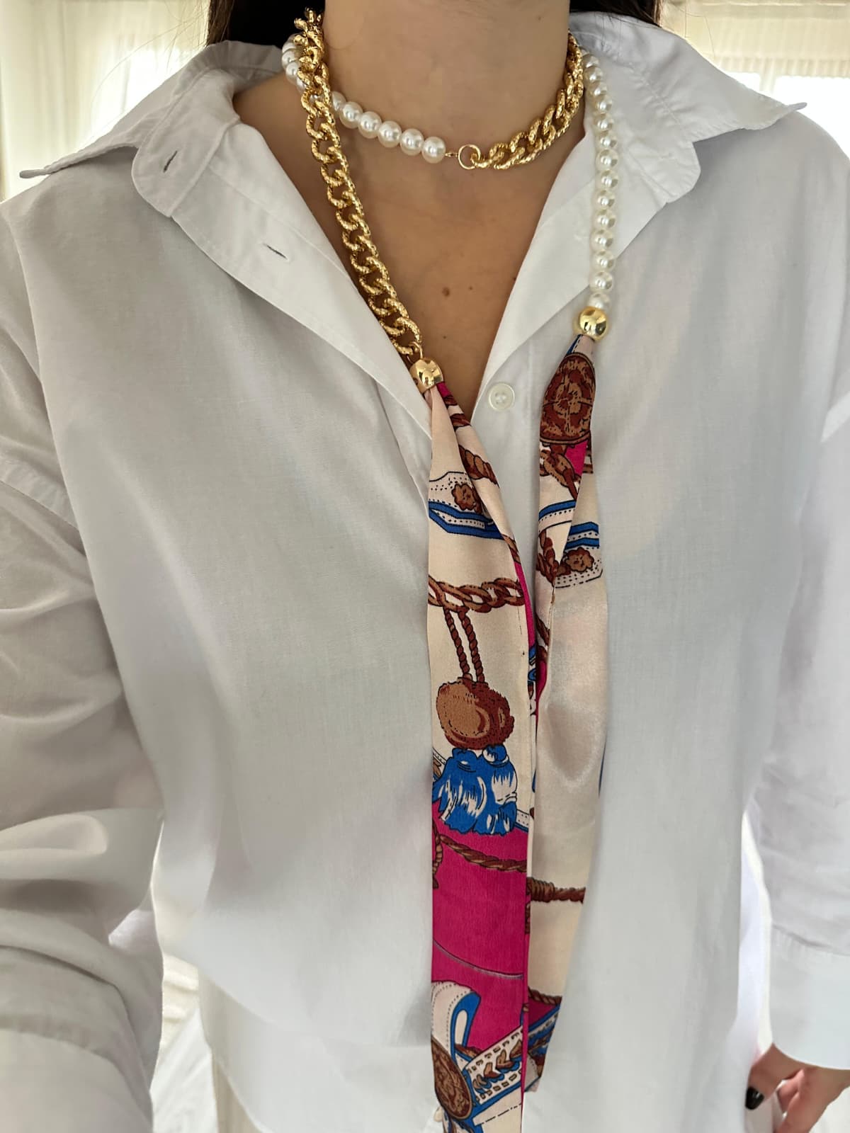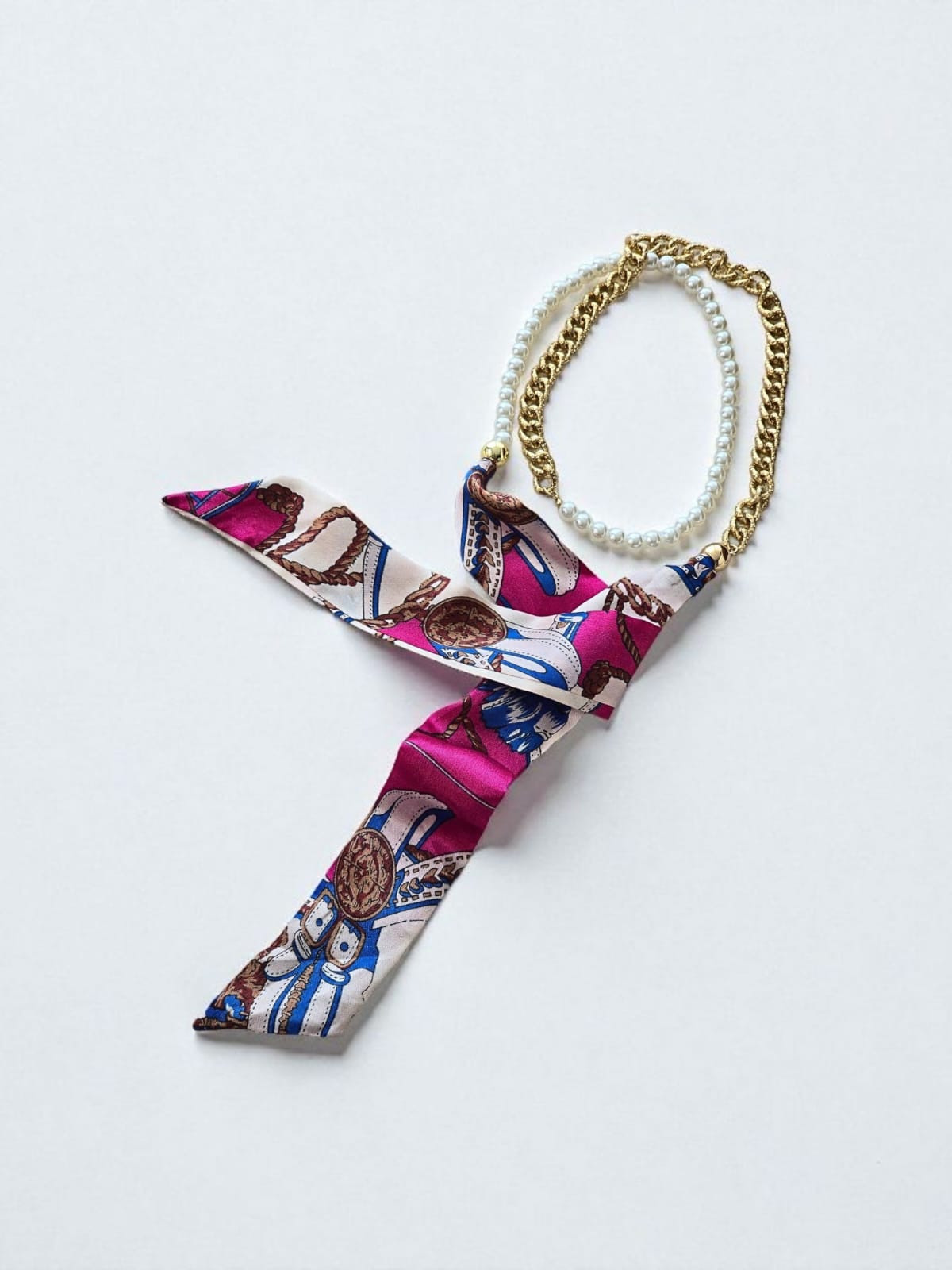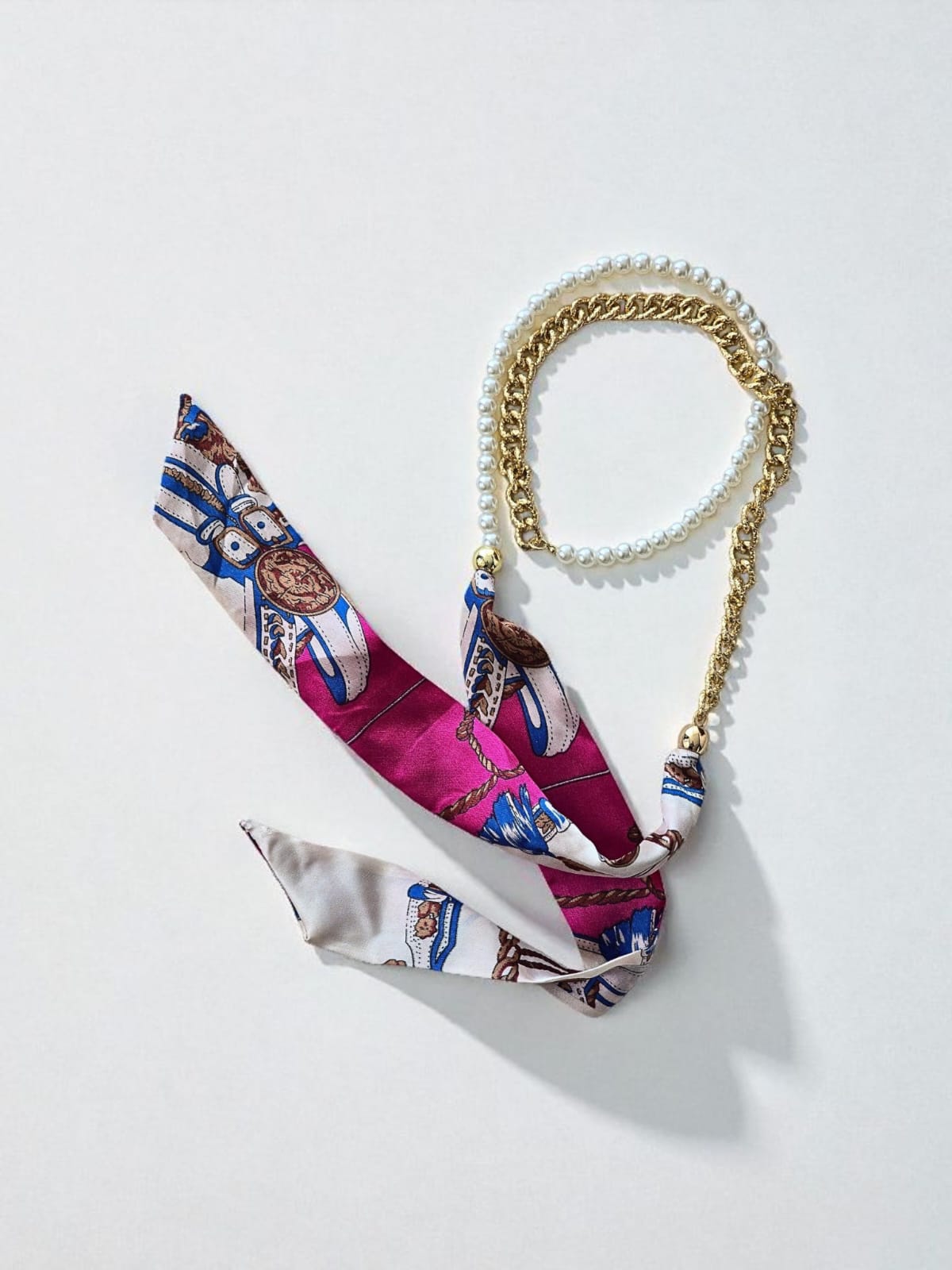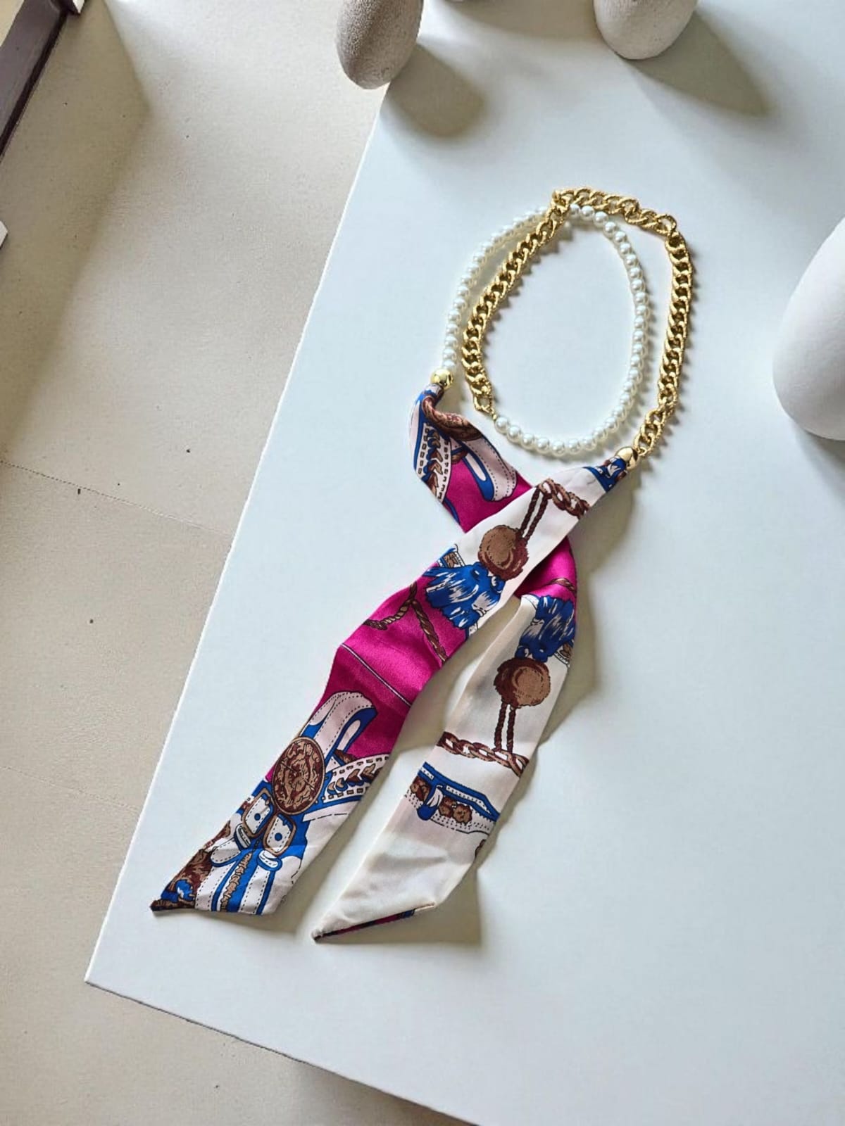 AURA Fular Serisi – Renkli Zincir ve İnci Detaylı Fular (KOD-394)