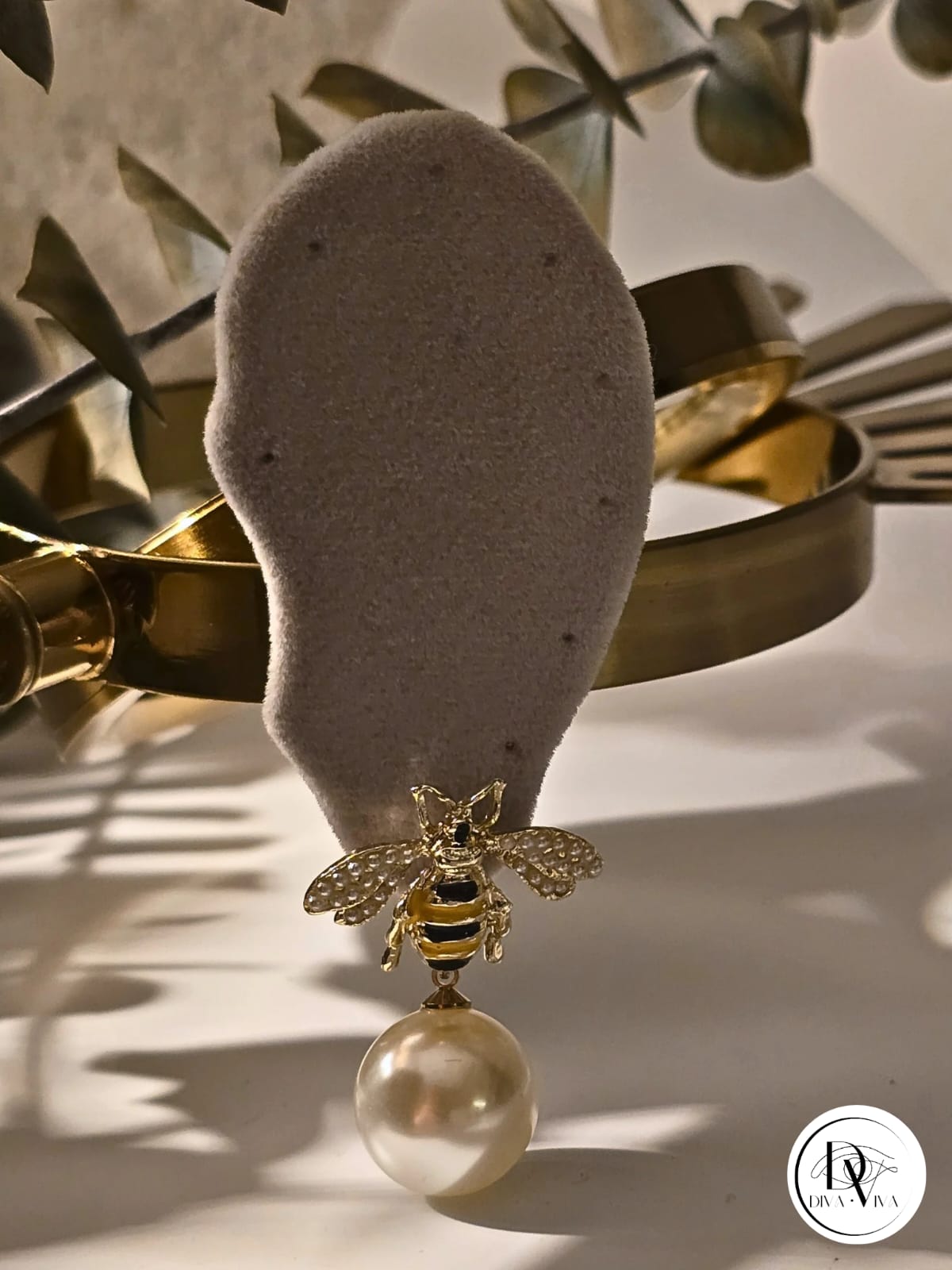 Glow Earrings – Gold Kaplama İnci Detaylı Arı Küpe (KOD-337)