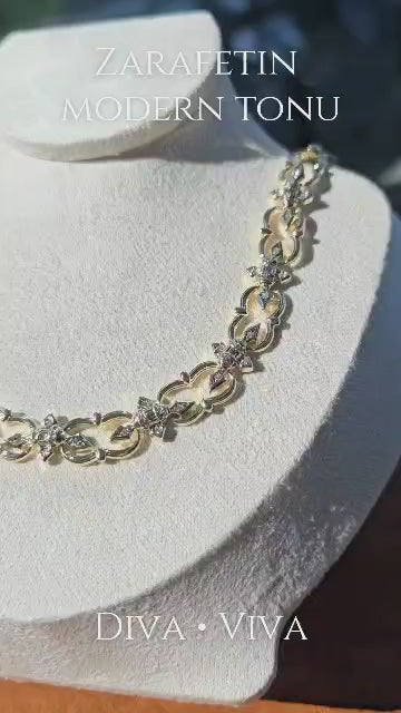 Parlak zirkon taş detaylarıyla göz alıcı ışıltı