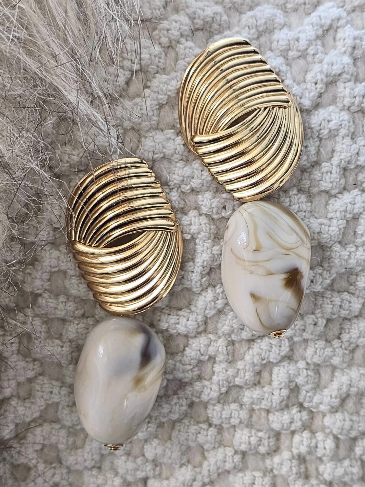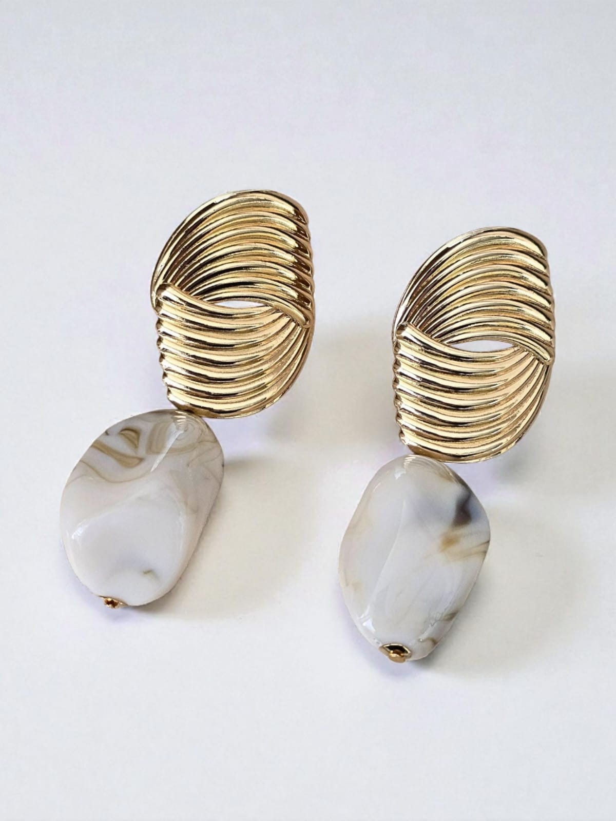 Wave Bold – Büyük Doğal Taş Detay Küpe (KOD-398)